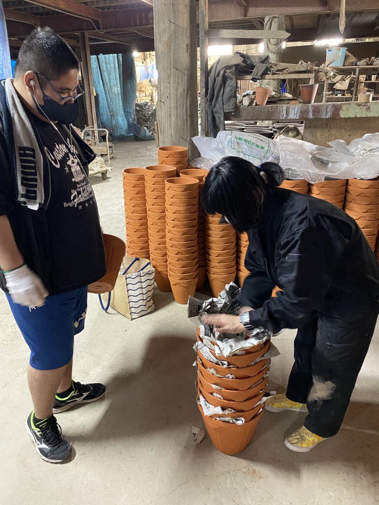 鉢工場に出向き出荷前の点検、準備を行なっています